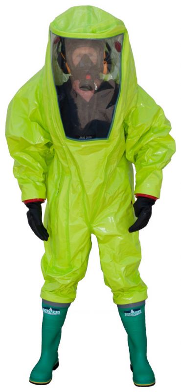 Les combinaisons d'entraînement présentent les mêmes caractéristiques que leur équivalent étanche aux gaz - la combinaison d'intervention ProChem VI TK - et sont conçues pour être réutilisées plusieurs fois au cours d'exercices. Ce modèle est équipé d'une botte de sécurité fixe et de fermetures à glissière étanches aux gaz pour simuler la réalité des exercices.